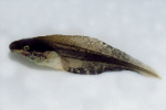 How long can the metamorphosis from tadpole to frog take? I have a tadpole in a bucket that I have been feeding since the end of the last wet season! He has grown a bit larger and paler but no appendages. - view
