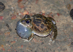 How long can the metamorphosis from tadpole to frog take? I have a tadpole in a bucket that I have been feeding since the end of the last wet season! He has grown a bit larger and paler but no appendages. - view